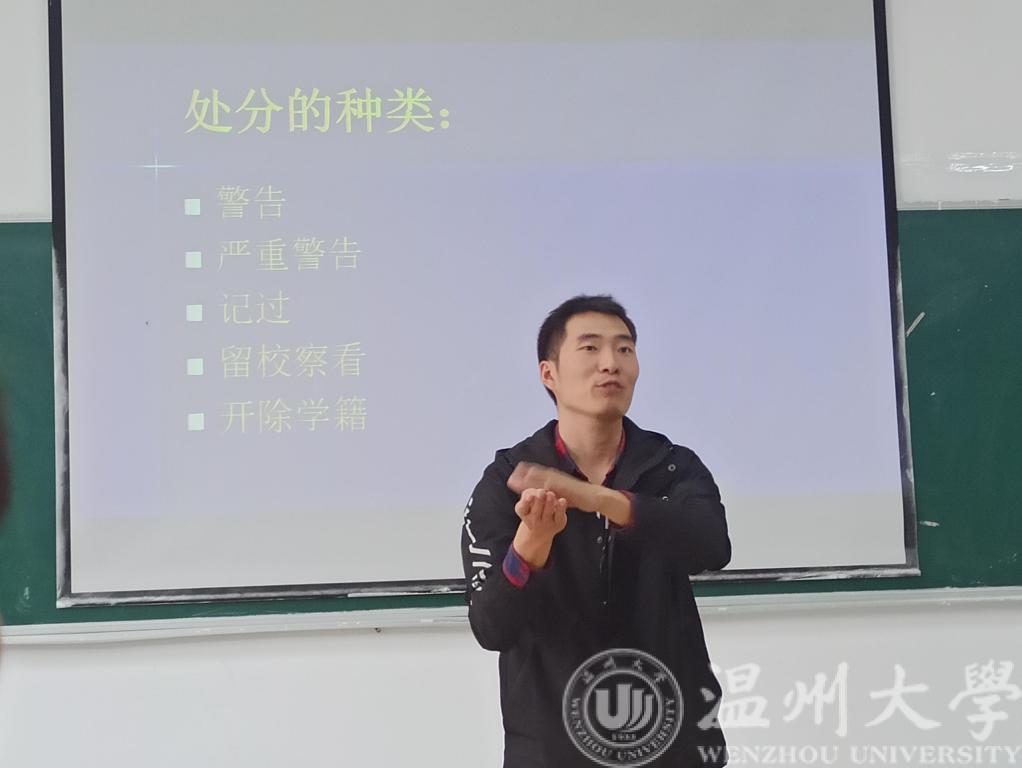 老师针对近期学院出现的无故旷课、请假不规范等情况,老师开展以《考试作弊,留校察看》为主题的班会讲座。班会中,老师首先针对对考试作弊行为、作弊后果、行为处分等方面给予详细解读,劝诫在座学生诚信考试,交出自己的诚信答卷。班会上,老师针对近期学生请假不规范、旷课现象给予通报,明确学生请假流程,告知学生旷课处分办法。班会最后,岳老师给予在场学子,认真复习,合理规划复习时间,沉着应对考试。同时,班会还针对本班具体情况,还开展了其他方面的教育工作。