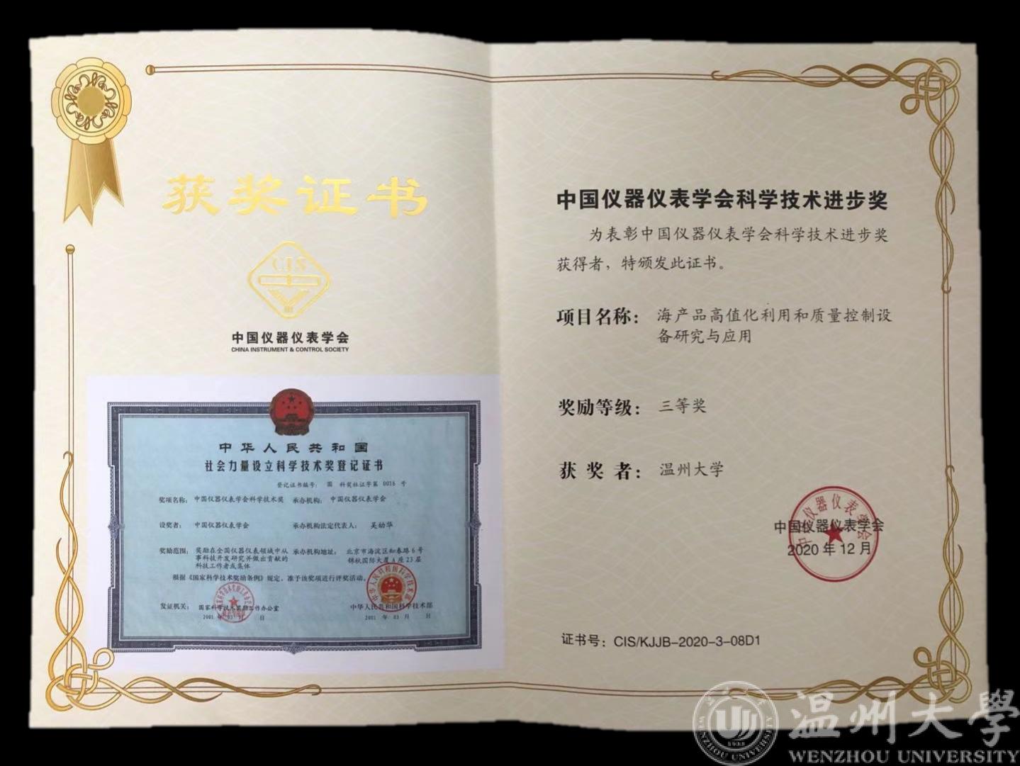 近日,beat365官网陈孝敬教授团队的科研成果“海产品高值化利用和质量控制设备研究与应用”,经中国仪器仪表学会严格评审,获评2020年中国仪器仪表学会科技进步三等奖。该成果主要应用核酸扩增、分子免疫、光谱分析、模式识别等相关技术手段,开展了对泥蚶、海地瓜等海产品的品质、重金属污染检测等相关领域研究,开发出一套海产品体内重金属污染定量及去除为一体的低成本、快速测试的关键技术和设备。本技术和设备应用推广后表明,不仅可以显著提升检测效率和准确性,而且还能提高现有海产品安全性商品的经济附加值,产生了显著的社会和经济效益。