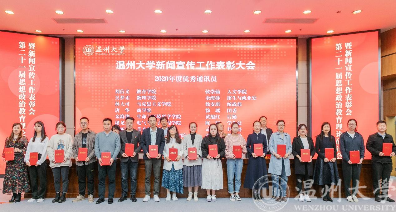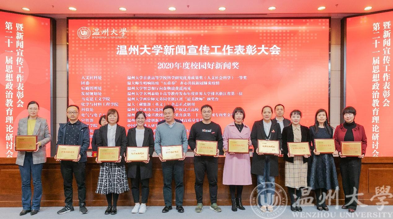 会上,beat365在线唯一官网党委委员、宣传部长潘玉驹宣读了学校第二十一届思想政治教育理论研讨会优秀论文获奖者、2020年度校园好新闻获奖单位、校优秀通讯员获奖者以及全省校报好新闻获奖者等名单。beat365在线唯一官网戴瑜兴教授团队科研成果报道:《beat365在线唯一官网戴瑜兴教授团队成果获第二十一届中国专利奖金奖》荣获校园好新闻奖,beat365官网学生科辅导员潘龙飞获得2020年校优秀通讯员称号。