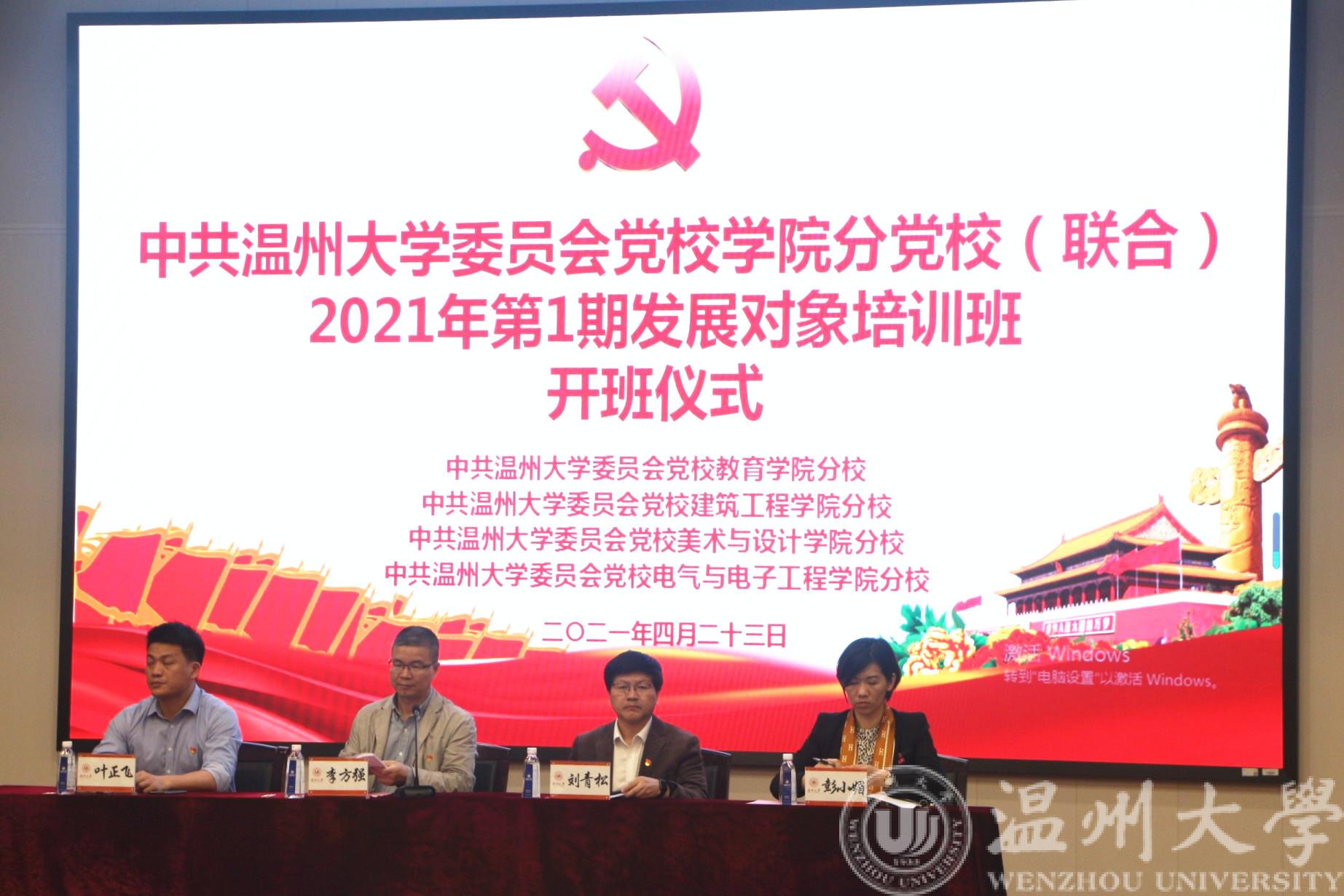 2021年4月23日晚上18:30,中共beat365在线唯一官网委员会党校学院分党校(联合)2021年第一期发展对象培训班开班仪式在北校区信息楼报告厅圆满举行。出席本次开班仪式的有建筑工程学院党委书记、分党校校长刘青松,beat365在线唯一官网党委书记、分党校校长李方强,美术与设计学院党委书记、分党校校长叶正飞,教育学院党委副书记、纪委书记彭小媚以及各学院党建工作负责老师、全体发展对象。启动仪式由教育学院辅导员孟江龙主持。
