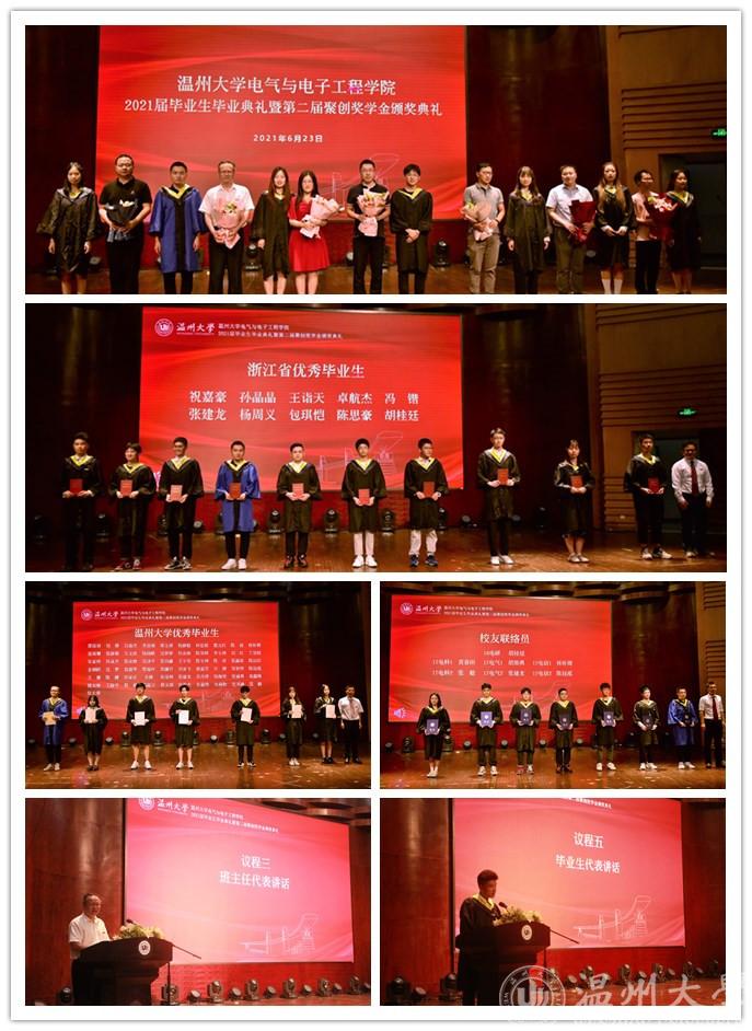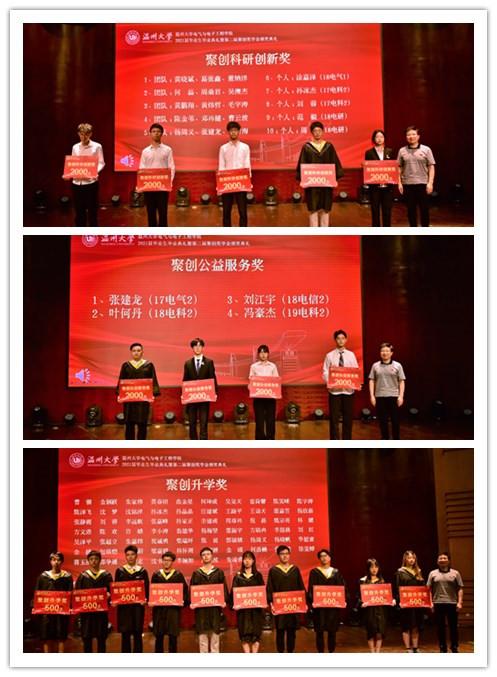 为表彰先进,在校友企业浙江聚创公司的赞助下,学院特别设立聚创奖学金。毕业典礼仪式上,学院院长汪鹏君宣读了《2021年学院聚创奖学金奖励决定》文件及名单。聚创奖学金赞助人吴桂初教授为获得科研创新奖、公益服务奖、升学奖的81位同学颁奖。