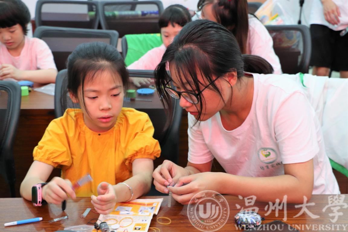 酵素科普宣讲活动在将军社区上午九点准时开始,将近一个小时的车程让大家略感疲惫,但为小朋友们宣传环保知识的心却依然火热。随着小朋友们的一一入座,我们的宣讲正式开始。队员们开始为小朋友们普及酵素知识,演示酵素实验,讲解基本的环保知识,还有播放13日实践队员们制作酵素的视频。小朋友们一个个都踊跃的参与问题的回答,让这一堂枯燥的课程变得无比有趣,最重要的是小孩子们天真无邪的眼睛,让实践队员们看到了他们每一个人求知好学的内心。最后是由黄晓虹指导老师带领小朋友们开展科技小制作的活动,小朋友们分组开展,个个都生龙活虎,兴趣高涨,由实践队员们带领着开始制作。制作过程是困难重重的,线路的连接不稳定、各个部分连接的不牢固都是问题所在。但在最后,当小朋友们高举最后制作成功的成果时,小朋友们的脸上都流露出了成功的喜悦,同时实践队员们也感到很欣慰。11点左右,赠送完小朋友礼品之后,小朋友们一个个都有序离开,队员们再一起把场地的卫生打扫干净,把桌椅等物品摆放回原位。在最后,各位实践队员与指导老师一起合影留念,一个上午的充实活动到此结束。
