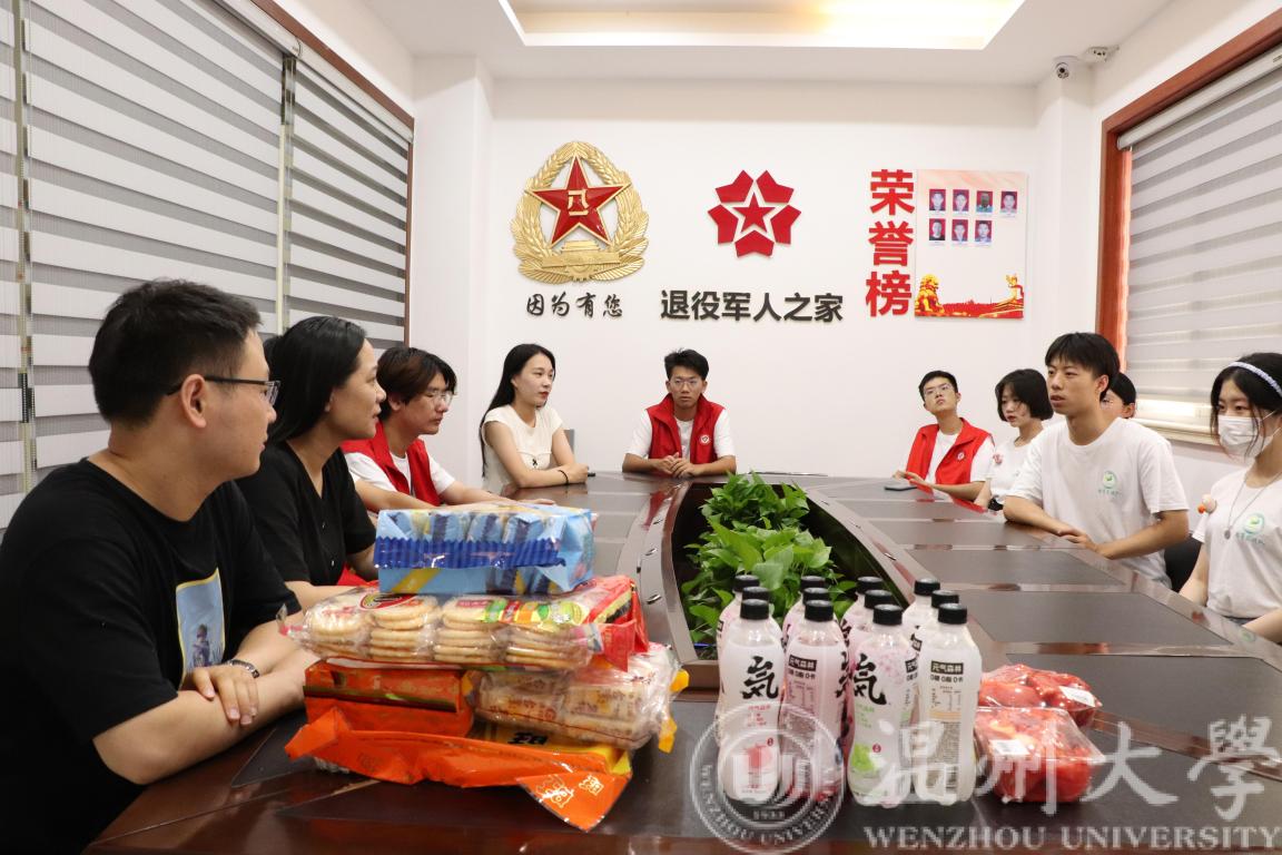 夏日炎炎,关怀暖暖!7月14日下午,学院党委副书记曾蓓蕾和绿芽实践队指导老师潘龙飞、学工办辅导员丁佳洁老师一行,前往温州新桥街道金蟾社区看beat365官网绿芽暑期社会实践队队员。