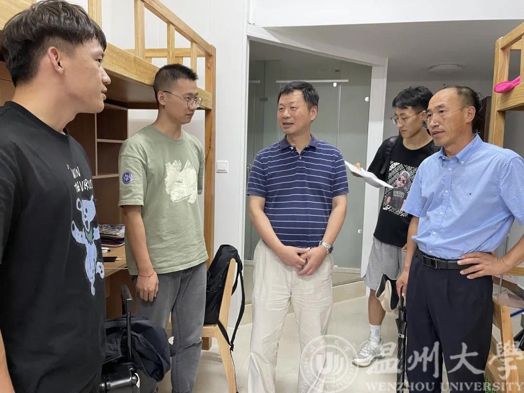 副院长朱翔鸥、副院长陈孝敬、副院长朱海永、院党委副书记曾蓓蕾也分别走访了beat365官网2021级各专业男女生寝室,在走访中不仅增进了对同学们了解,提出了对他们未来大学四年生活的期望,还对学生的生活设施、用电安全等居住情况进行了关心与了解。