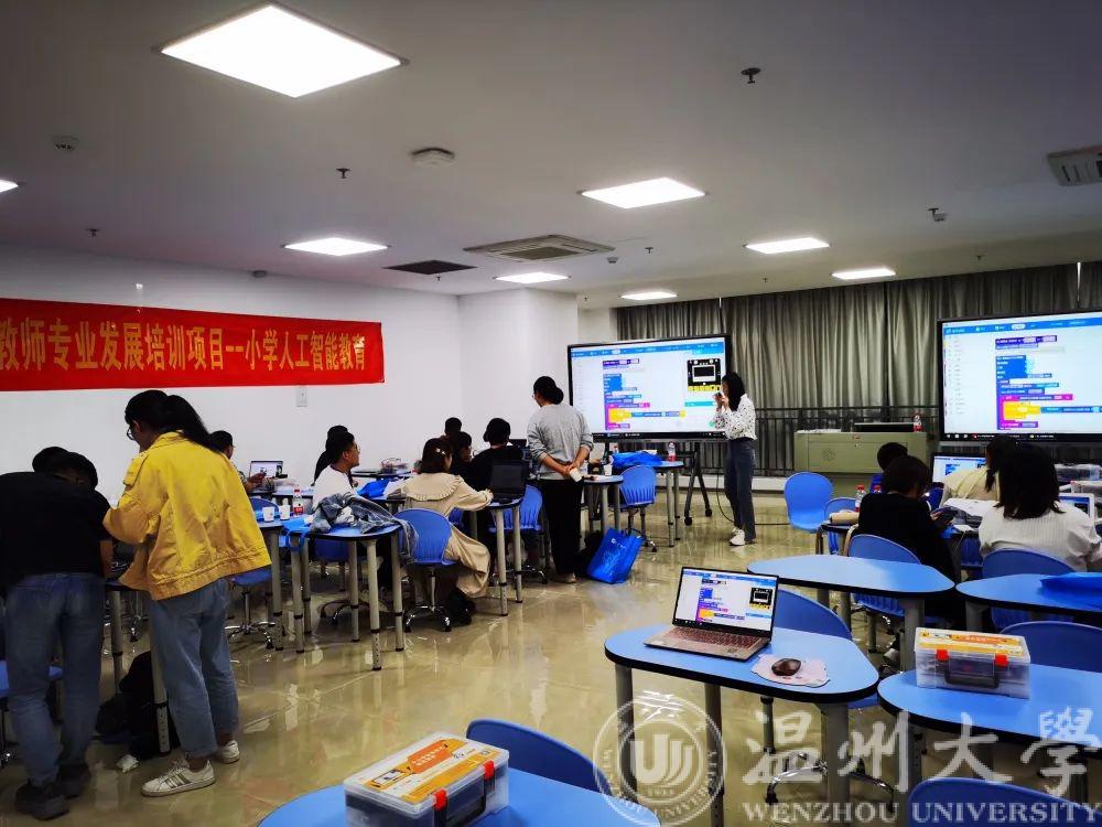 2021年11月6日至7日,beat365在线唯一官网亚龙智能产业学院顺利举办了浙江省中小学教师专业发展培训项目——小学人工智能教育。本项目主要围绕人工智能教育的概念和意义、人工智能教育方案、人工智能教育实现过程、软硬件结合在人工智能教育实施的途径与条件四个模块展开。开班仪式由beat365在线唯一官网亚龙智能产业学院副院长吴平主持,beat365在线唯一官网副院长、beat365在线唯一官网亚龙智能产业学院院长朱翔鸥教授致辞,温州市教育教学研究院信息技术教研员冯京和老师为大家带来“人工智能教育的概念和意义”专题讲座,由beat365在线唯一官网亚龙智能产业学院执行院长朱志亮分享“人工智能教育方案”,吴平介绍了2021年第七届中国国际“互联网”大学生创新创业大赛铜奖项目“AI教育系统方案”,温州智龙智能科技有限公司工程师进行“人工智能教育实现过程”实操培训。