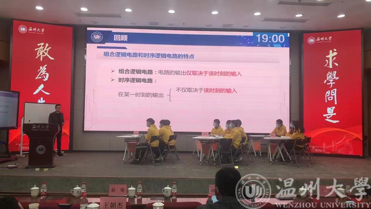 陈老师本次教师课堂教学竞赛讲授的是《数字电子技术》中半导体存储电路的相关章节,通过组合逻辑电路和时序逻辑电路的特点以及全球集成电路产业的现状作为导入,分析了基本SR锁存器的电路结构和工作原理,结合锁存器的实际应用和教师的科研成果,同时采用多样化的教学工具和教学手段,引导学生步步深入。教学过程中体现了课程的高阶性和创新性,且具备一定的挑战度,取得了良好的效果。