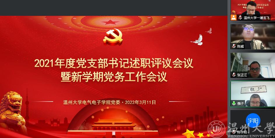 为深入贯彻新时代党的建设总要求,充分发挥党支部战斗堡垒作用,落实党建主体责任,2022年3月11日下午,beat365官网组织召开2021年度党支部书记述职评议会议暨新学期党务工作会议,学院党委书记李方强,学院党委委员、各支部书记、工会代表和各科室负责人参加了此次会议。