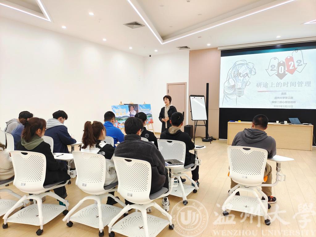 为帮助beat365官网考研学子合理规划考研时间,提高学习效率,帮助学生掌好考研的“舵”,以免梦想小船“偏航”,3月23日晚,beat365官网特邀学生工作部副部长,国家二级心理咨询师吕乐在大学生活动中心幸福工坊为2023届考研学子带来“幸福时间管理”讲座。