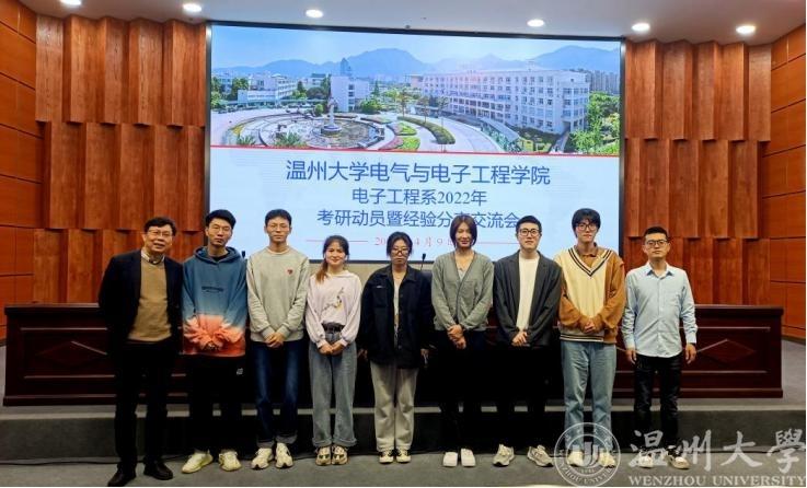 本次交流会由庄友谊老师主持,庄老师首先介绍了近年来电子系两个专业学生参加考研的整体情况,并从行业分析、生涯规划、学校政策等方面动员同学们积极准备考研,特别是考虑温大本校本专业的学术型硕士和专业型硕士。接着庄老师介绍了2022年度目前电子系本科生考研录取情况,指出今年的一大特点是名校录取人数和比例高,如浙大、同济、厦大、西电等。