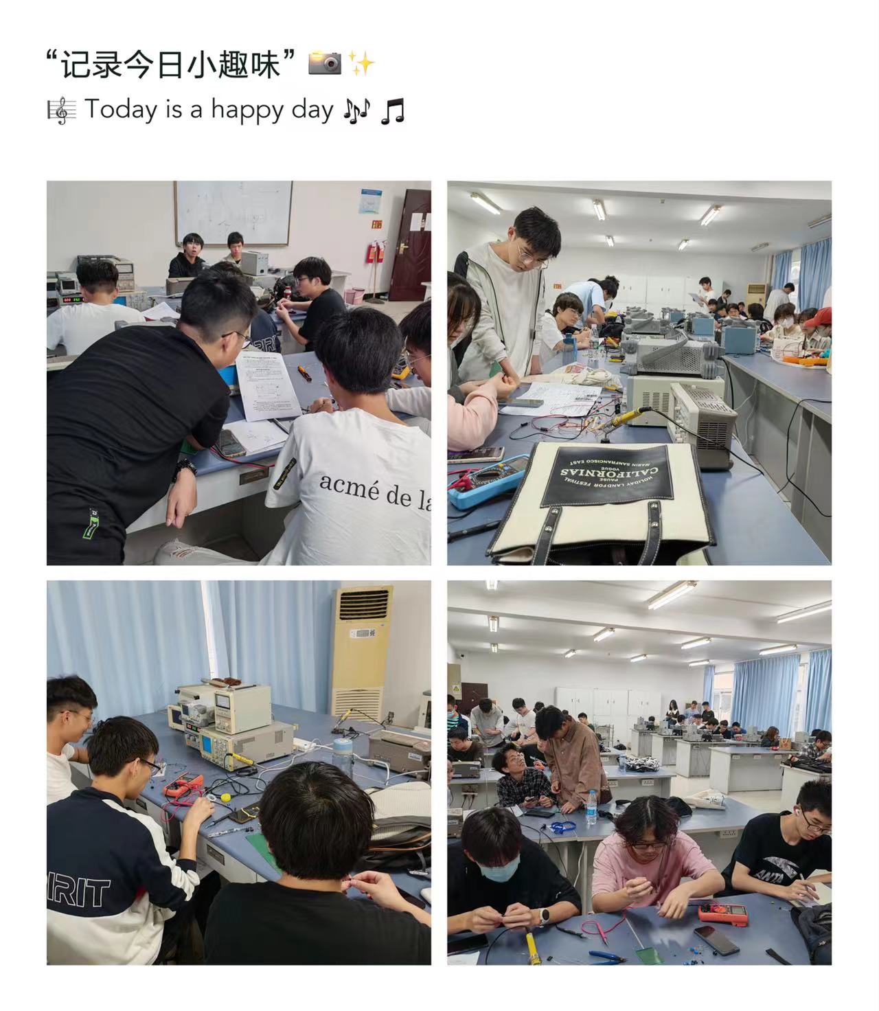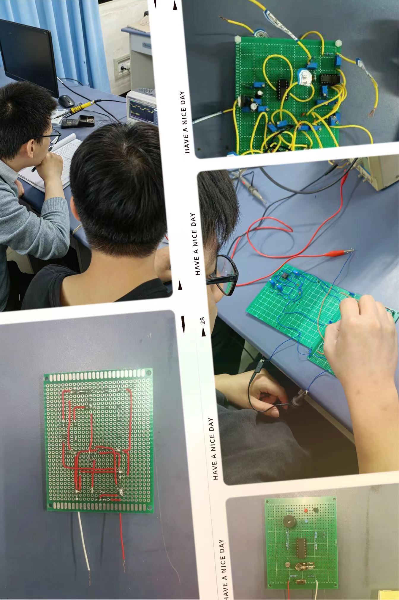 第二个环节为作品制作。4月23日一早,同学们进行激烈角逐,认真思考、沉着应战,比赛紧张而有序地进行。在他们眼中,这不仅是简单的元器件,而是他们汗水的代表,是他们一天的成果。