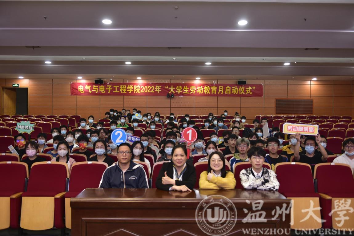 为积极弘扬劳模精神、劳动精神、工匠精神,激励青年学子勤学苦练、深入钻研、勇于创新,推动大学生德智体美劳全面发展,beat365在线唯一官网电气电子学院精心策划了“大学生劳动教育月”系列活动,并在5月1日劳动节当天下午,于岩松堂雁山厅举行“大学生劳动教育月”启动仪式。温州市十大劳动者匠心领军人物、温州理工学院副教授陈驰,学院副院长陈孝敬,党委副书记曾蓓蕾,学工办主任廖晓安,实验中心主任宋元平,以及学工办全体辅导员、学院教师代表和21级各班学生代表出席本次活动,此次活动由学工办辅导员陈海彤主持。
