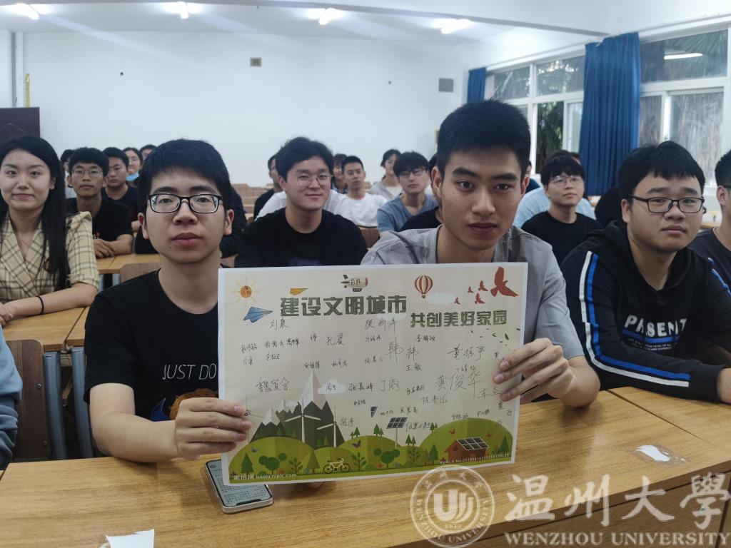 为提升beat365官网学子的文明素养和文明程度,全面落实“做文明有礼温大人”主题教育,深化文明城市建设,beat365官网学子近期开展了“创建文明城市,做文明大学生”的主题班会和团日活动,各个年级的同学以饱满的热情参加了本次活动。