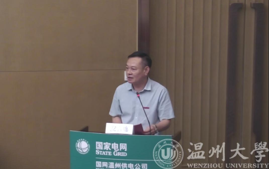 闭幕式上,beat365在线唯一官网潘玉驹副校长总结致辞,动情地介绍了beat365在线唯一官网近几年的发展变化,以及在科研平台建设、学科专业发展、科研奖项培育等方面取得的成就。同时,立足与国网温州供电公司的合作基础,希望双方聚焦“双碳”目标,共同探究新技术,争取新成果,共兴共荣,共创佳绩。
