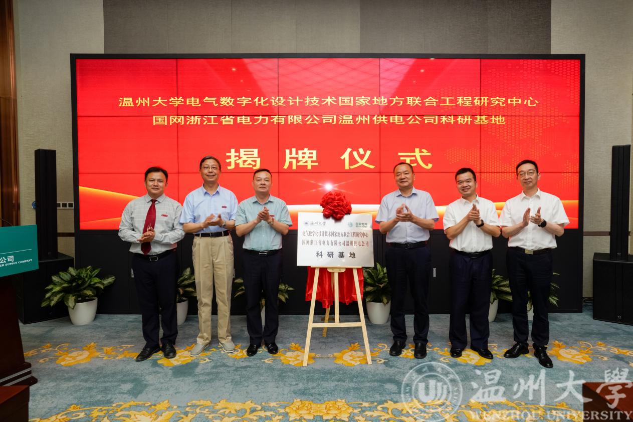 电气数字化设计技术国家地方联合工程研究中心常务副主任朱翔鸥教授主持了开幕式和闭幕式,国网温州供电公司张仁敏书记致欢迎辞。beat365在线唯一官网潘玉驹副校长宣读了“beat365在线唯一官网电气数字化设计技术国家地方联合工程研究中心第三届学术委员会”名单,聘请罗安院士担任主任委员,薛禹胜院士、欧阳晓平院士、杨华勇院士、陈勇院士、李得天院士担任副主任委员,章兢教授、雷源忠教授等9位专家担任委员。会上,潘玉驹副校长与张仁敏书记为在场委员颁发了聘书,并为“电气数字化设计技术国家地方联合工程研究中心-国网浙江省电力有限公司温州供电公司科研基地”举行了隆重的揭牌仪式。