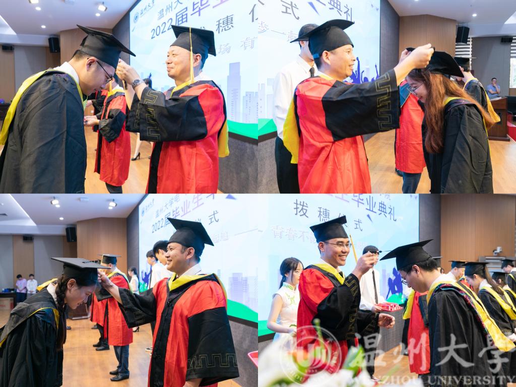 最后,典礼进行庄严的拨穗仪式。拨穗代表稻穗或麦穗成熟,毕业拨穗象征毕业生学有所成,可以展翅高飞。学院领导们为本届毕业生们一一拨穗,动作虽然简单质朴,但是神圣而意义非凡。