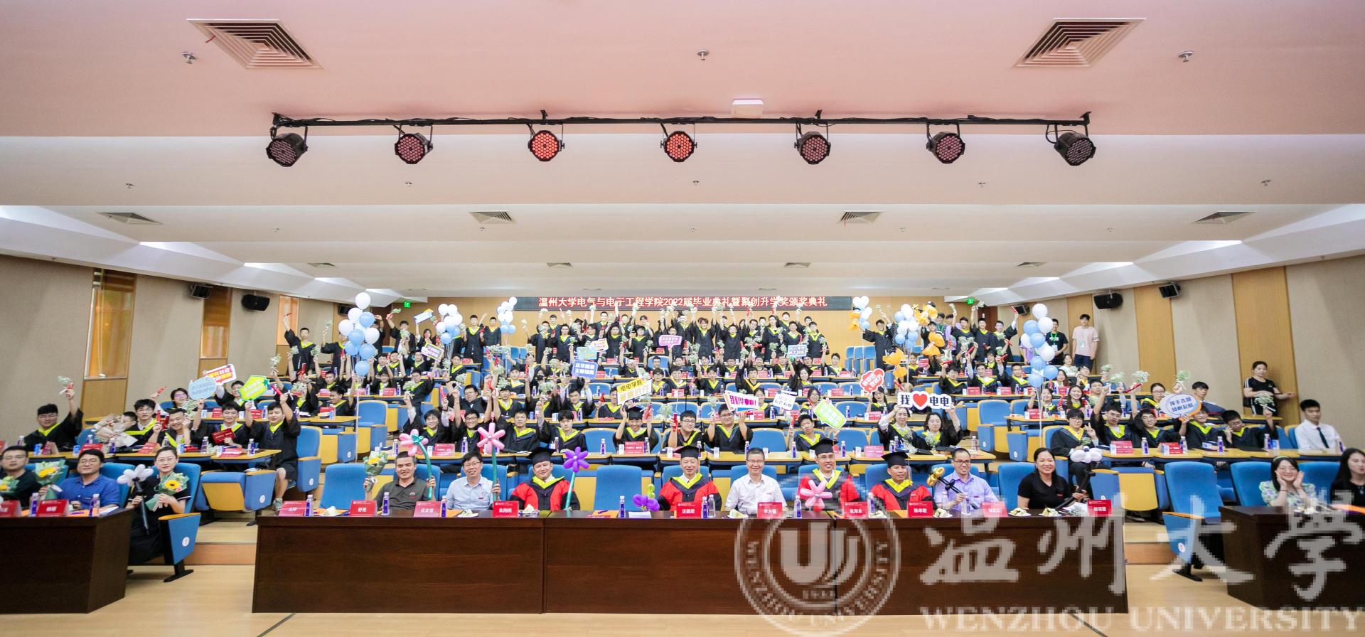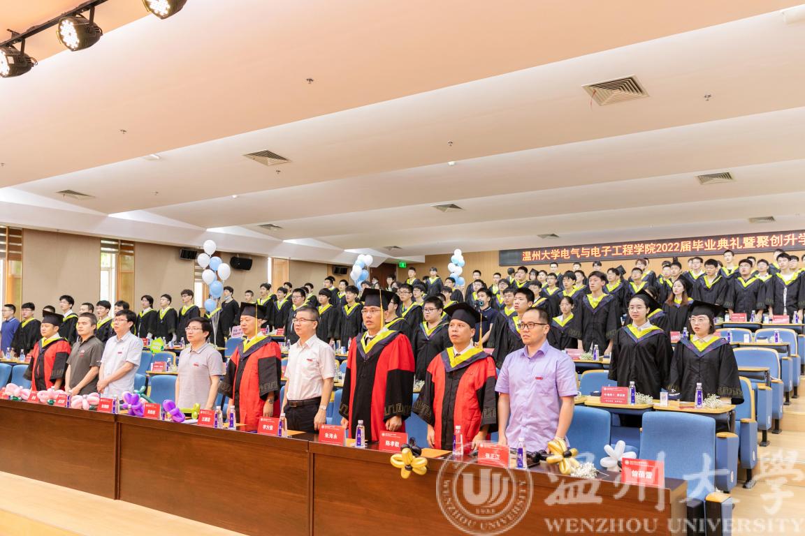 六月蝉鸣,盛夏别离,又到一年毕业季。6月21日下午14:45,beat365在线唯一官网2022届毕业生毕业典礼暨第三届聚创奖学金颁奖典礼于beat365在线唯一官网南校区岩松堂步青厅圆满举行。学院院长汪鹏君,党委书记李方强,副院长朱翔鸥、陈孝敬、朱海永,党委副书记曾蓓蕾,浙江聚创公司董事长、学院聚创奖学金发起人吴桂初教授,电气系党支部书记张正江,电子系系主任庄友谊,各毕业班班主任,各科室负责人,学工办全体辅导员,以及2022届本研毕业生出席本次毕业典礼。本次毕业典礼采用线上线下相结合的方式进行。