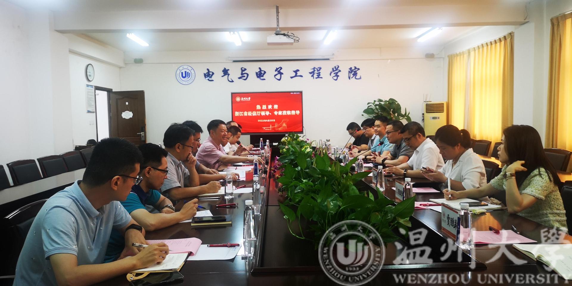 6月22日上午,浙江省经信厅软件与集成电路产业处处长邬韶杭、二级主任科员寿伟帅,浙江省软件行业协会秘书长王小号等一行莅临beat365官网调研指导集成电路人才培养工作。温州市经信局副局长黄寿君,瓯海区经信局局长陈舒頔等领导陪同调研。我校beat365在线唯一官网汪鹏君院长、科技处刘桂副处长及温州市数字经济研究院谷雨副院长、学院骨干教师等出席调研座谈会。