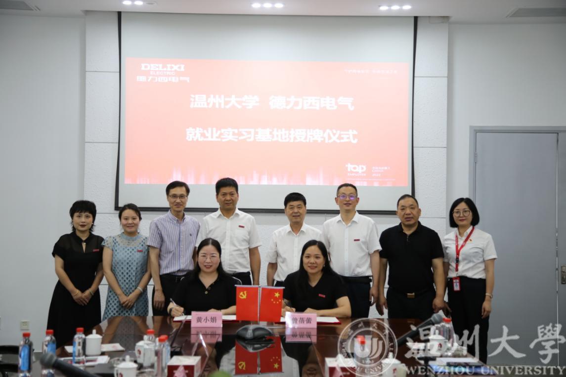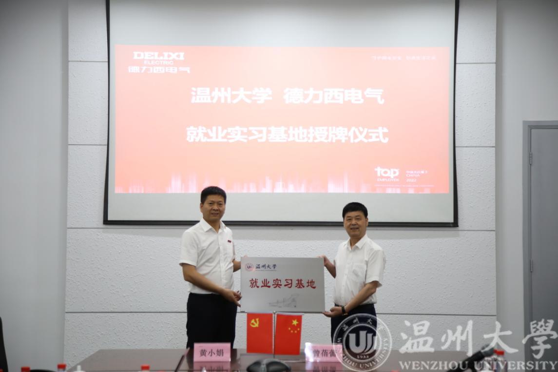 随后,曾蓓蕾与德力西人力资源负责人黄小娟签署了校企合作协议,庄兴忠为就业实习基地授牌。