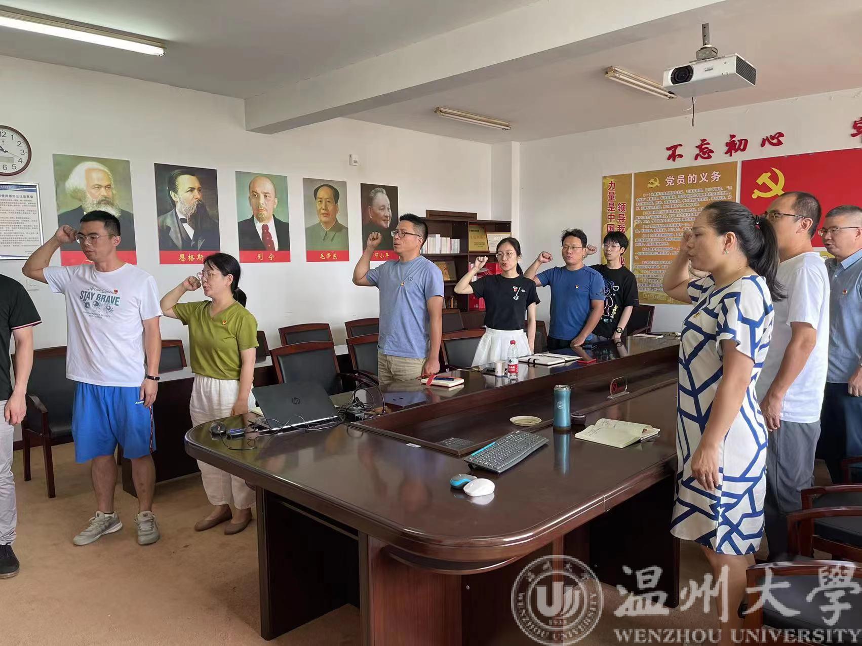 6月29日上午10:00,beat365在线唯一官网行政教工党支部全体党员在党建活动办公室1A512举行“学省十五次代表大会精神,迎建党101周年生日”暨新党员入党宣誓、重温入党誓词主题党日活动,学院党委书记李方强参加活动。学院党委副书记、行政教工党支部书记曾蓓蕾主持。