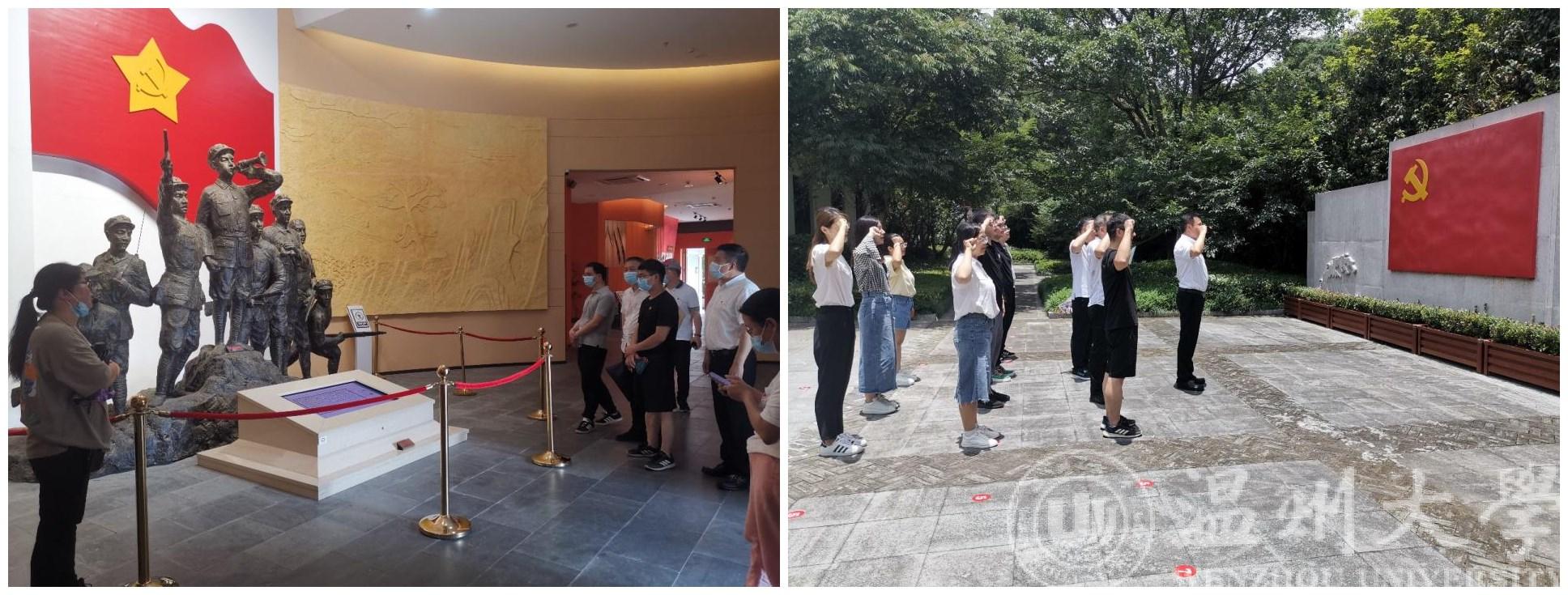 6月28日,beat365在线唯一官网智能锁具研究院党支部联合温州市五金商会、瓯海区智能安防产业协会,以“商会永远跟党走,同心奋进新征程”为主题开展迎“七一”主题党日活动。上午10时许,党员同志们到达工农红军挺进师纪念园,看到了那象征着烈士鲜血染红的红旗长廊,上面雕刻着迟浩田题写的几个醒目大字"中国工农红军挺进师纪念园"。在导游的指引与解说下,我们一边重走“北上抗日出征门”,参观中国工农红军挺进师纪念碑,一边倾听他们的革命故事,缅怀革命先辈。