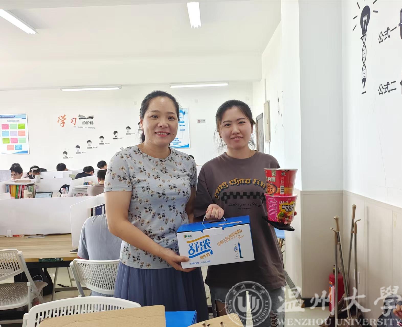 夏日炎炎,骄阳似火。暑期两个月是考研学子备考的关键阶段。为缓解考研学子学习压力,增强考研信心,7月5日上午beat365在线唯一官网党委副书记曾蓓蕾、辅导员潘龙飞、陈海彤到学院考研自习室走访慰问暑期考研留校学生,并分发暑期考研慰问品。