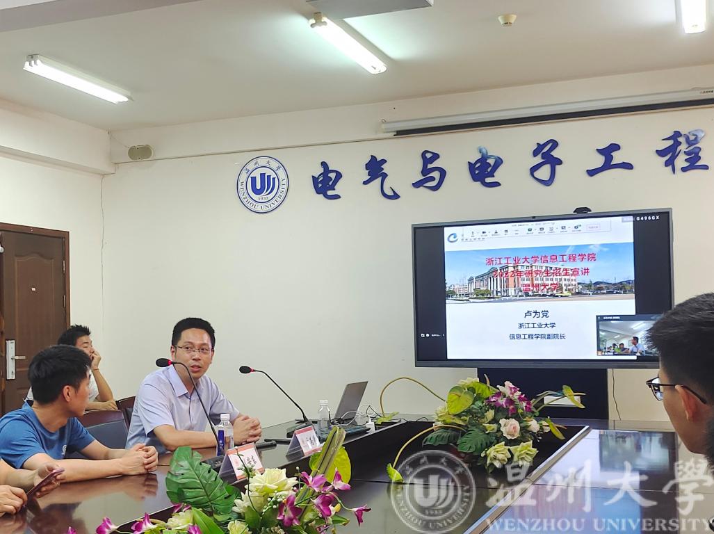 7月26日上午10:00,浙江工业大学信息工程学院2022年研究生招生宣讲会在beat365在线唯一官网1A-502召开。本次宣讲会由浙江工业大学信息工程学院副院长卢为党教授及控制工程学位负责人刘安东副教授担任主讲,beat365官网党委副书记曾蓓蕾老师主持,2019级有意向报考的同学参与。