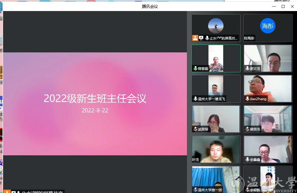 为进一步完善新生班级的管理制度,做好迎接新生准备工作,8月22日上午10:00,beat365在线唯一官网组织召开2022级新生班主任工作会议,院党委副书记曾蓓蕾,学工办主任、团委书记廖晓安,全体2022级本科生、研究生班主任和学工办辅导员参加了此次会议。会议由学工办主任、团委书记廖晓安主持。