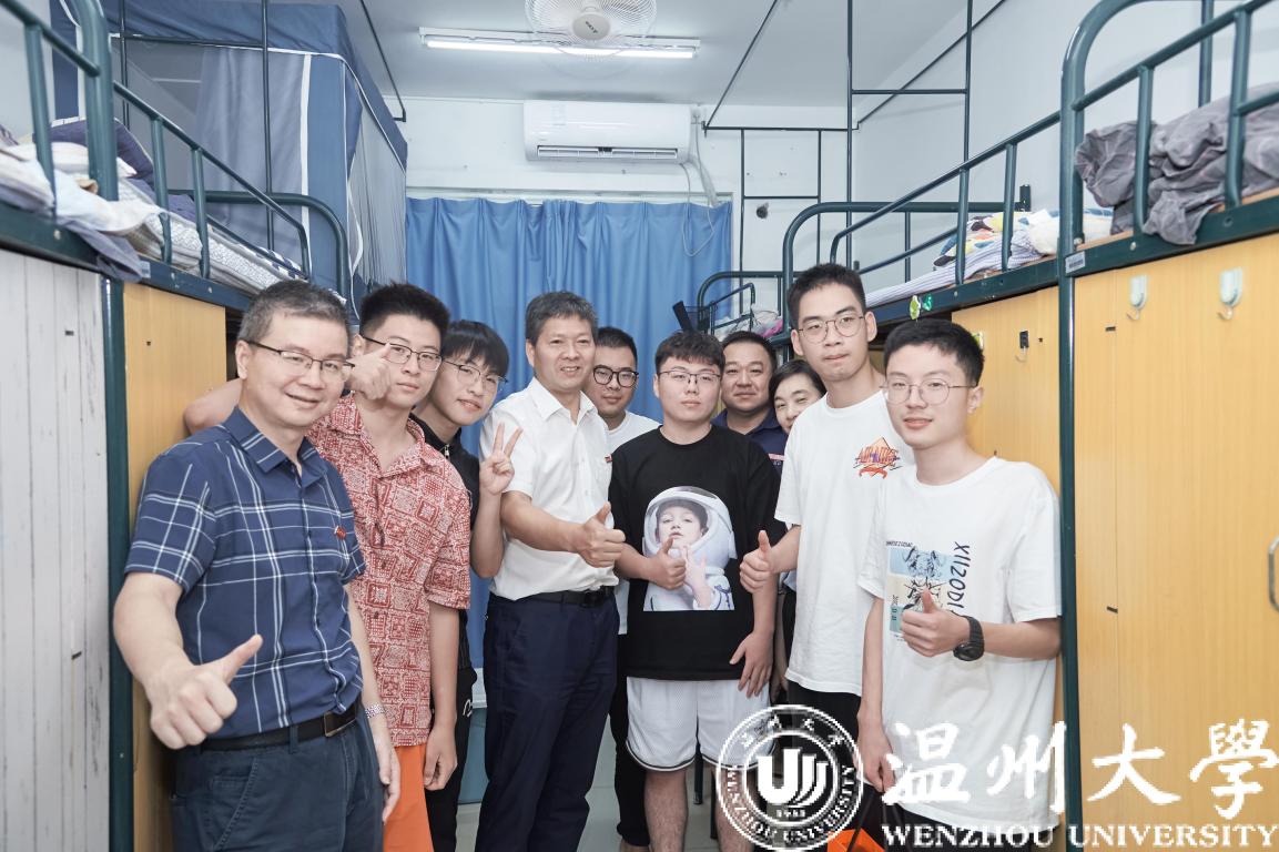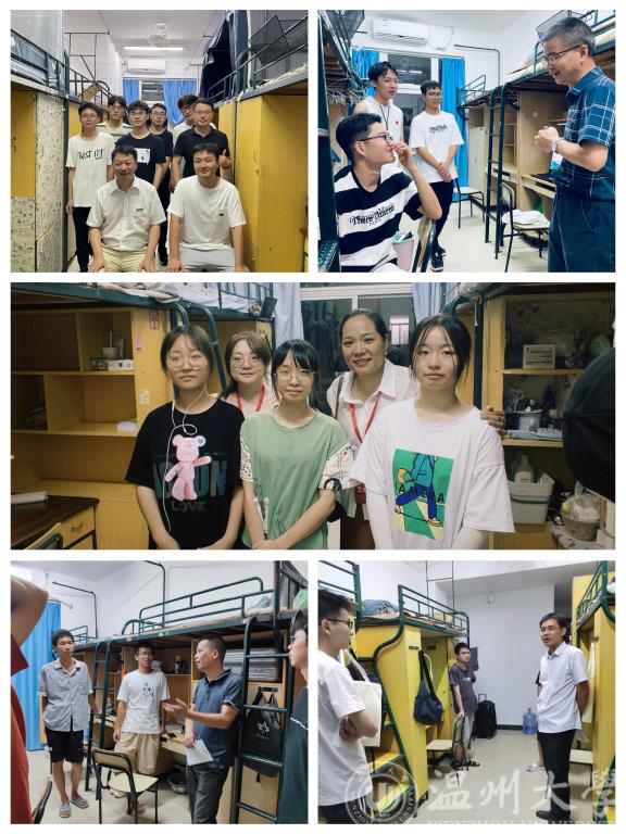 9月6日晚上,beat365官网院长汪鹏君,党委书记李方强、副院长朱翔鸥、副院长陈孝敬、副院长朱海永、党委副书记曾蓓蕾,在全体辅导员和学生干部的陪同下,一起深入新生寝室,为2022级的同学们送去了温暖的问候与祝福。在走访的过程中,老师们亲切地与同学们打招呼,并询问同学们来自哪里,衣食住行、生活是否习惯等方面的问题。同学们纷纷表示正在积极地适应学校的生活环境,适应大学生活,转变身份。