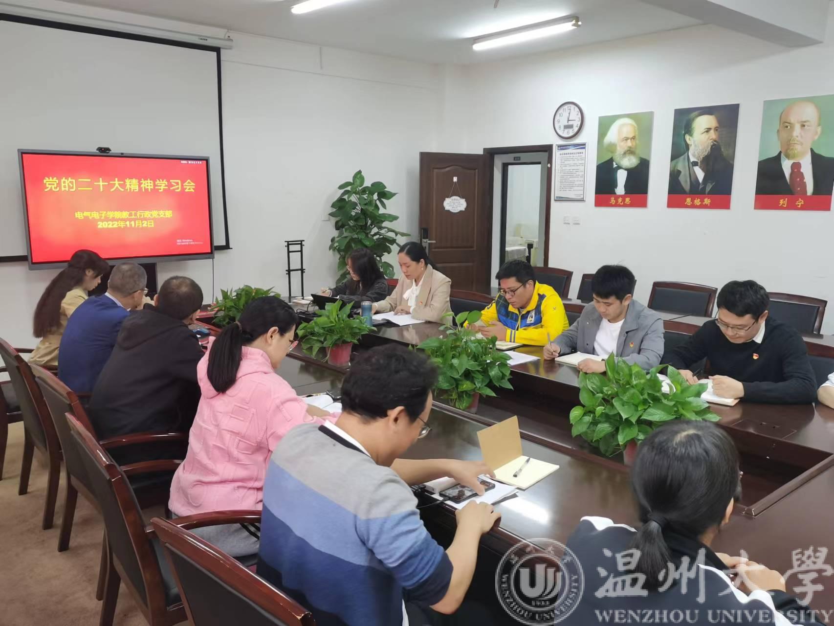 11月2日下午,beat365在线唯一官网行政教工党支部组织召开党的二十大精神专题学习会,会议由支部书记曾蓓蕾主持。