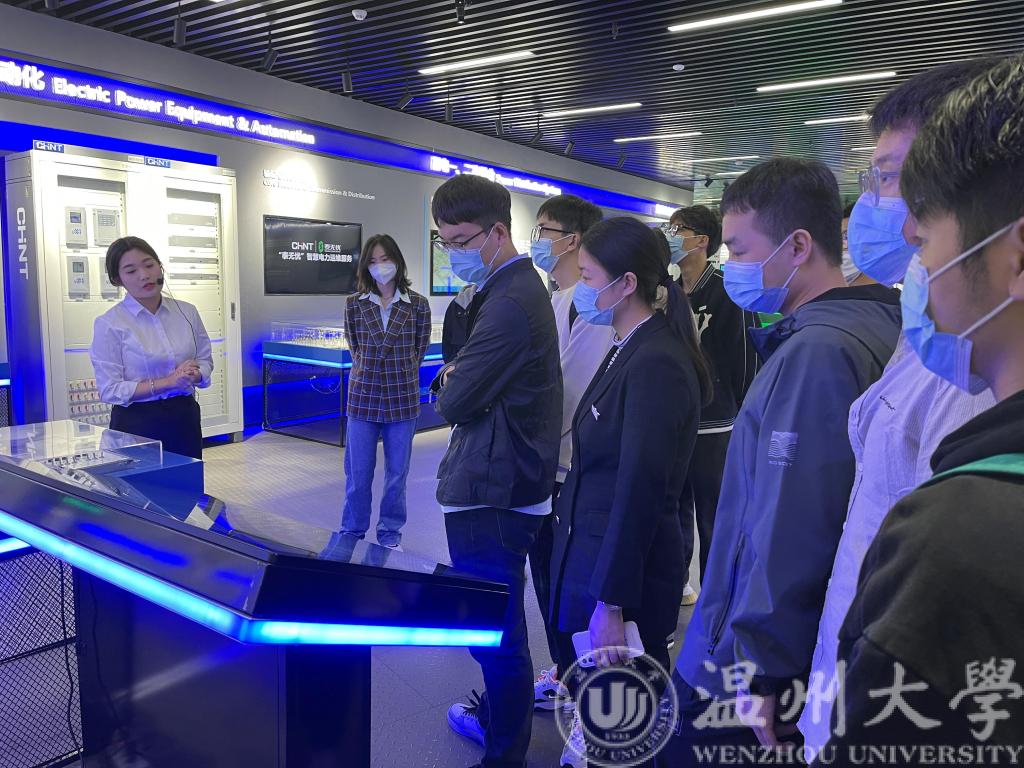 首先,老师和学生们在正泰工作人员的讲解和陪同下,参观了正泰创新体验中心,了解到了正泰的发展历史、主要产品和取得的一些成就。