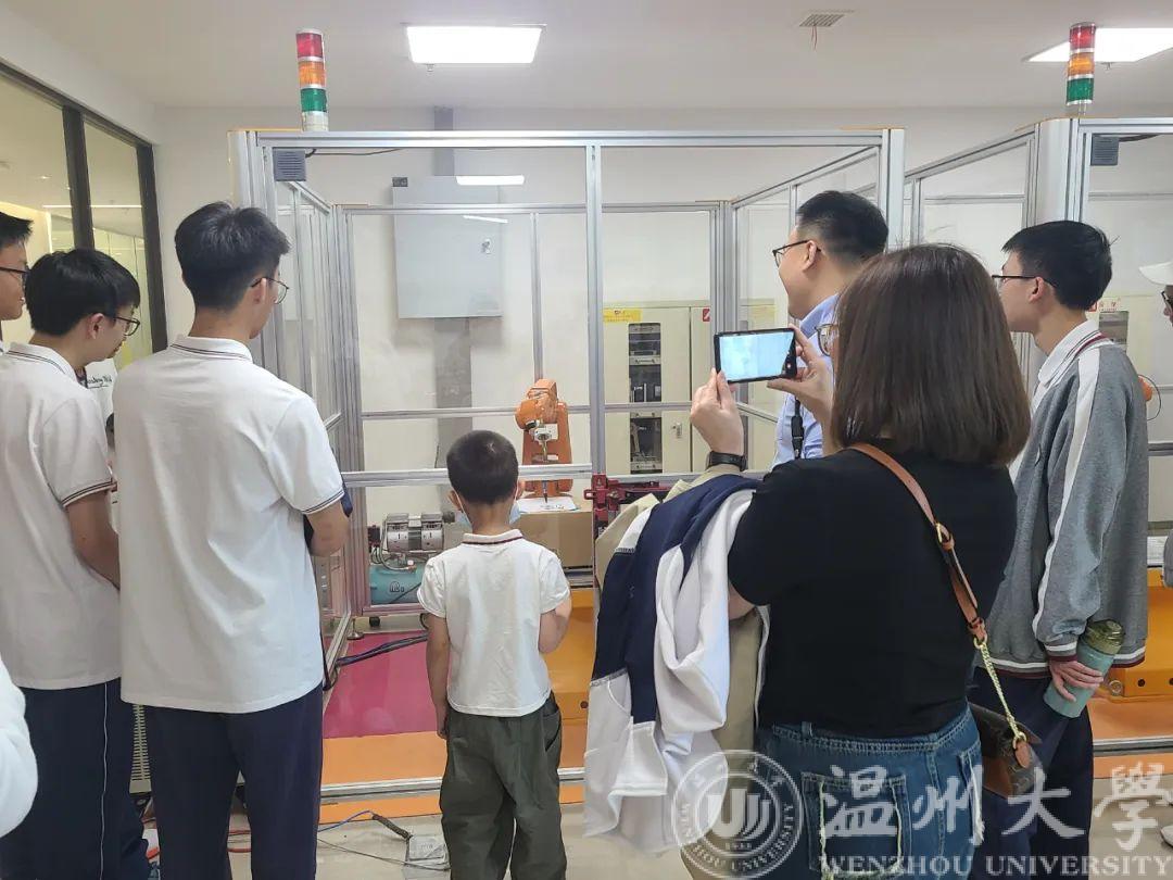 在老师的讲解和示范下,同学们亲身体验着各种各样的科技项目,包括智能小车控制、 VR、智能制造学习工场、工业机器人视觉实践、工业机器人与数控机床实践等内容,带领青少年用视觉和触觉零距离感受Al科技带来的魅力。“活动很有意义,我不仅体验到科技的奥秘,更是难得的一次动手动脑实践锻炼的机会,很多都是课本中没有的知识”来自温州第二高级中学初二的陈同学分享到。