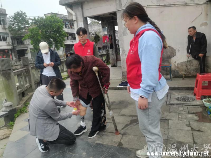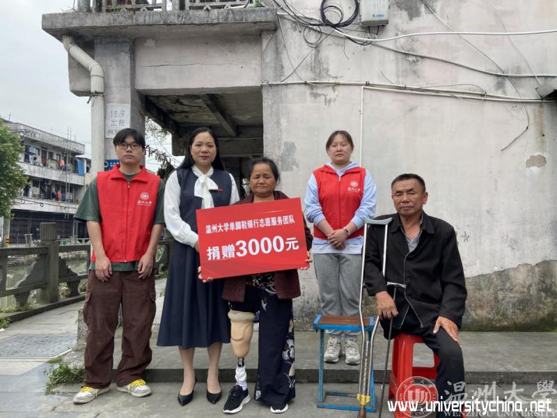 beat365在线唯一官网师生帮助的是一名50多岁的曾阿姨,是他们帮扶了三年的单脚残疾人。曾阿姨的丈夫也是一名姓曾的高位截肢残疾人。他们虽来自不同的省份,因为命运的相似,他们俩相相互扶持共同生活多年了,目前居住在温州南白象街道一个低矮破旧的房屋里。志愿者们三年来为他们送来各季节的鞋子,米、面、油等生活用品;还在看望慰问他们的同时,给曾氏夫妇的家中墙壁贴上了贴纸,帮助他们整理和改造住宿环境。志愿者们在多次帮扶过程中了解到曾阿姨的截肢是具备安装假肢的条件的,只是打零工的收入微薄,只够温饱,没有多余的钱购买假肢。而曾阿姨也因为长期需要跪着做家务活等,截肢的右脚残肢上的结痂一层一层,又厚又硬,志愿者每次看到都非常心疼。为了让曾阿姨能够生活的更加便利,志愿者们四处联系筹措,希望能为曾阿姨装上一副全新的假肢。通过多方努力,志愿者们联系到瓯海残联并获得了5000元的资助。这离全部的假肢制作费用还差一部分,于是就有了开始的捐款情景。