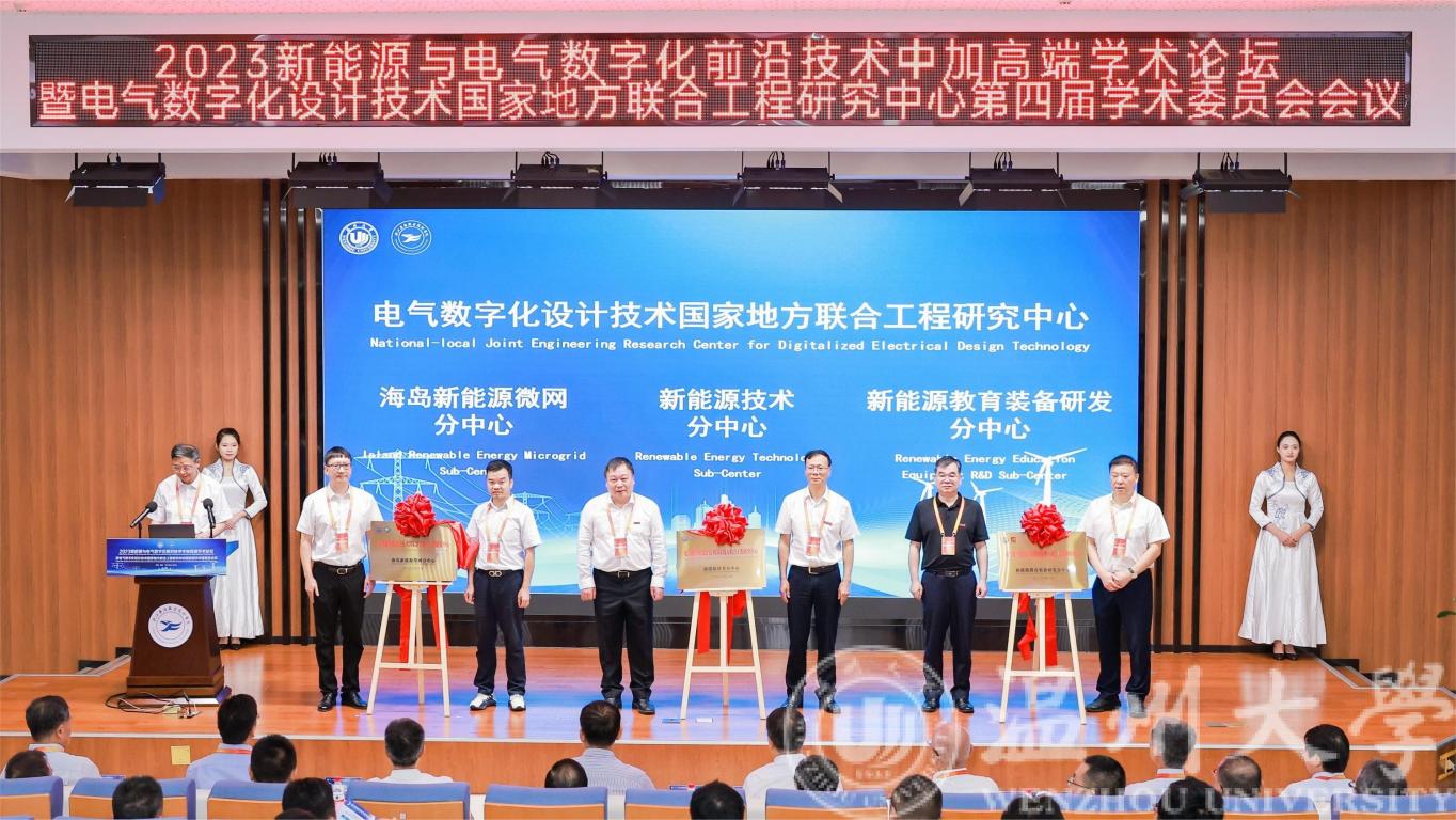 会议上宣布了电气数字化设计技术国家地方联合工程研究中心第四届学术委员会名单,还为电气数字化设计技术国家地方联合工程研究中心和落户在安防学院的新能源技术分中心、落户在国网平阳中心的海岛新能源微网分中心、落户在亚龙智能装备集团股份有限公司的新能源教育装备研发分中心等三个分中心揭牌。当天,由安防学院、beat365在线唯一官网联合新能源龙头企业创设的新能源行业产教融合共同体举行了启动仪式。
