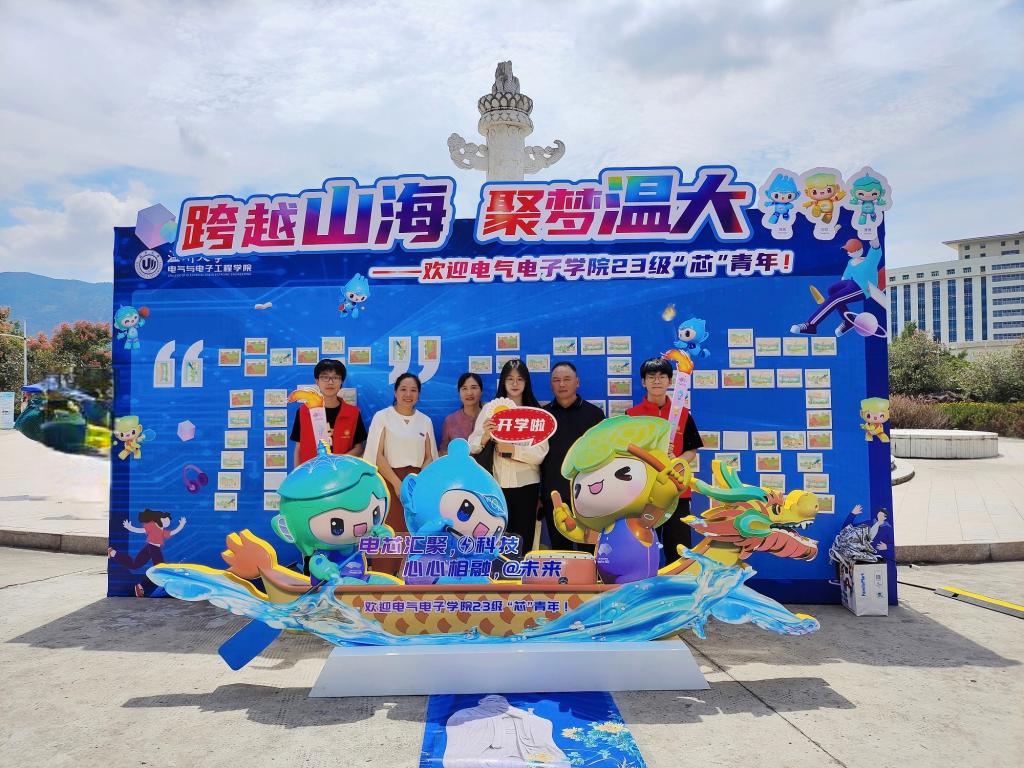 充满科技风的“充电赛道”,集芯片元素和电路图组成的科技之光“芯”青年愿望墙,彰显了电气电子学院电气工程及其自动化、电子科学技术和集成电路的专业特色,与学院培养新时代科技创新人才的方向不谋而合;而特别定制的龙舟造型,呼应了温州作为第19届杭州亚运会龙舟主场地,展示了温州中国龙舟文化之乡的深厚底蕴。昂首向前的龙舟上载着杭州亚运会的吉祥物琮琮、宸宸、莲莲,他们蓄势待发,寓意着青年学子朝气勃勃、精神焕发。
