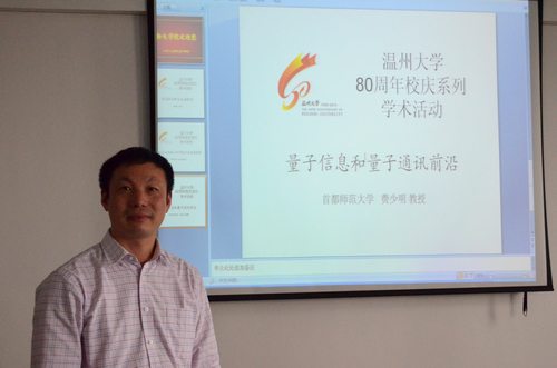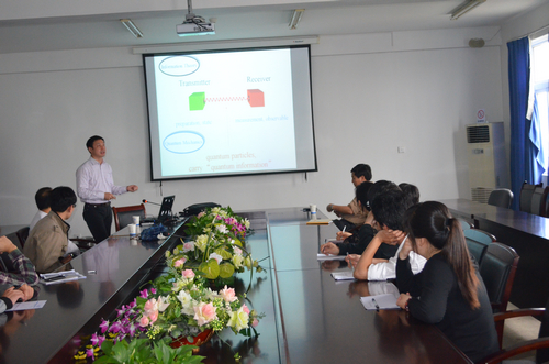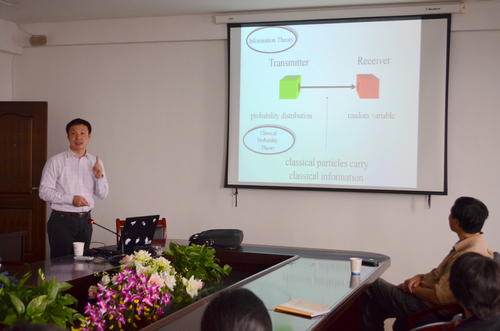 4月18日,首都师范大学费少明教授来beat365官网学术交流,并做了《量子信息和量子计算前沿》的学术报告。费教授介绍了他们提出的关于量子态纠缠度刻画方面的一系列工作,并与beat365官网相关老师和研究生做了深入的探讨。 费少明教授的研究方向主要为量子物理以及相关的数学物理问题,在Phys.Rev.Lett.等杂志发表SCI论文130余篇,在国内外作邀请报告80余次,担任美国数学学会“数学评论”杂志评论员、中德文化教育交流协会理事、意大利科研评估理事会(CIVR)专家组成员,《Advances in Mathematical Physics》和《中国科学: 物理学 力学 天文学》等国际杂志编委。