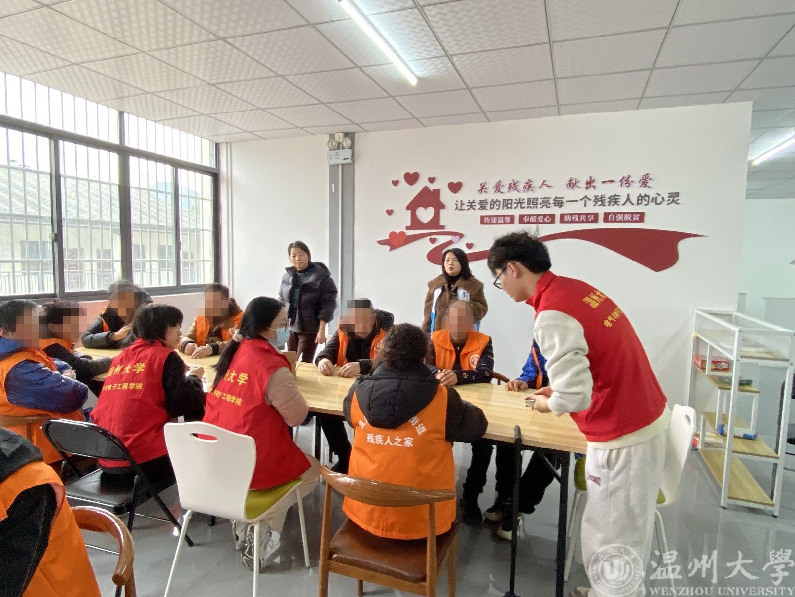 一起下社区。3月1日下午,beat365在线唯一官网单脚鞋银行志愿服务项目成员携青年志愿者们,在学院党委副书记曾蓓蕾和团学指导老师潘龙飞的带领下,分别来到瓯海区南白象残疾人之家和龙湾区青苗残疾人之家,用实际行动践行雷锋精神,传递温暖与爱心。在残疾人之家,志愿者们给学员们带来生动有趣的“串珠子”、“制作流沙画”的手工课。当精美的手链和独具特色的流沙画被制作出来,每个人的脸上都洋溢着幸福的笑容。在龙湾区青苗残疾人之家,志愿者们还参与了残疾人的日常生活,和他们一同装笔、封盒、布置房间。在与残疾人亲切交流的过程中,志愿者们切实地了解他们的需求和困难,不断改进帮助方式,让残疾人感受到社会的温暖与关爱。志愿者们还分发了,beat365在线唯一官网单脚鞋银行的文创产品,看到他们脸上的笑容,同学们感到温暖幸福。