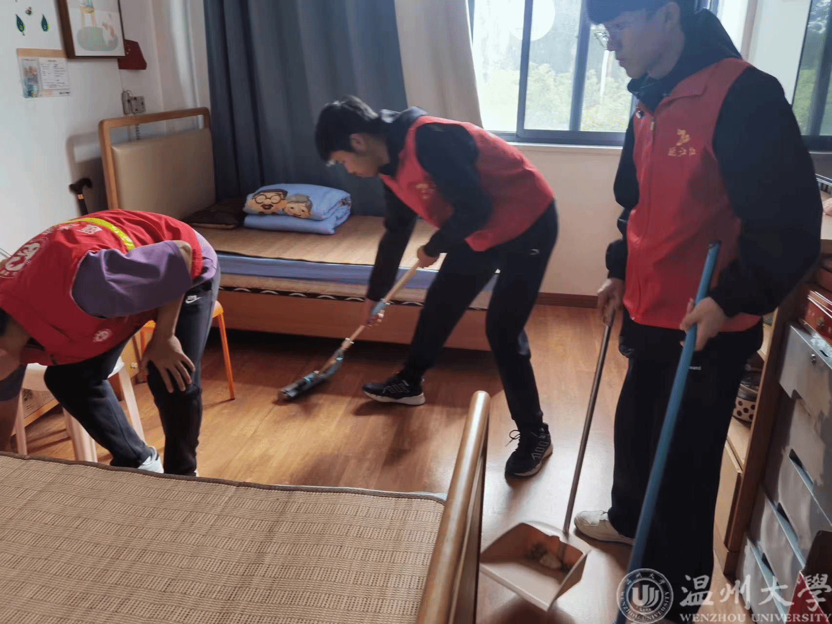 在残疾人之家,志愿者们给学员们带来生动有趣的“串珠子”、“制作流沙画”的手工课。当精美的手链和独具特色的流沙画被制作出,每个人的脸上都洋溢着幸福的笑容。在龙湾区青苗残疾人之家,志愿者们还参与了残疾人的日常生活,和他们一同装笔、封盒、布置房间。在与残疾人亲切交流的过程中,志愿者们切实地了解他们的需求和困难,不断改进帮助方式,让残疾人感受到社会的温暖与关爱。