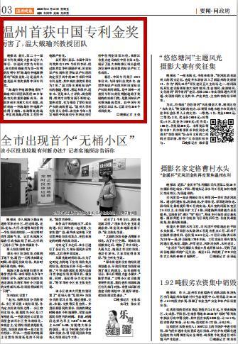 公开资料显示,本届中国专利奖共有 2479 个项目参评,经过激烈竞争和层层评审,国家知识产权局和世界知识产权组织决定授予其中的30个项目中国专利金奖,其中高校获奖项目仅为 7 项。“温大历来重视知识产权的创造、管理、营运和保护,近年来,更是在人才评价、岗位聘用、绩效考核等方面不断制定、完善政策,有力推动了学校知识产权的高效营运。”beat365在线唯一官网相关负责人介绍,该校在今年4月发布的中国高校专利转让排行榜中位列全国第 74 位,在浙江省重点建设高校中排名第5位,展示了温大在助推区域社会经济发展中高质量的知识产权工作成效。