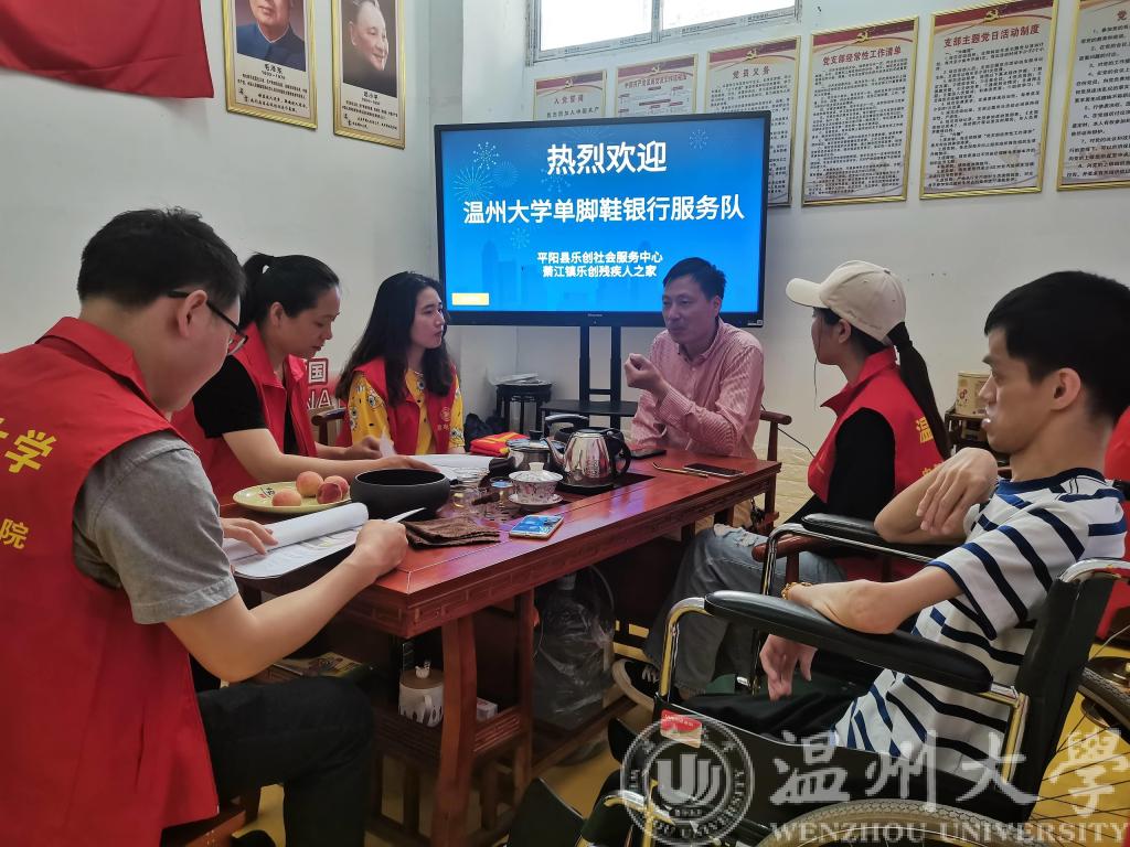 2021年5月16日,是全国第31个助残日,为了弘扬人道主义精神,倡导关爱残疾人士的社会风气,beat365在线唯一官网“单脚鞋银行”项目成员在学院党委副书记曾蓓蕾老师的带领下,来到了温州市平阳县萧江镇乐创残疾人之家,看望残疾人朋友们,并且为他们送去了各个鞋码的不同款式的单脚鞋。