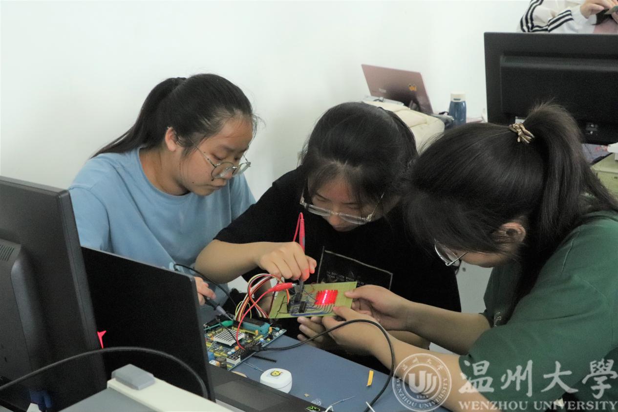 发光二极管,闪动的党徽、党徽、红船、100周年、2021-2021等图文,通过单片机呈现出跃动的符号,发出悦耳的音乐……。2021年6月5日,周六,beat365在线唯一官网工程实验室内,热闹非凡,一场“党味”十足的特色电路焊接大赛作品成果展示正在举行。