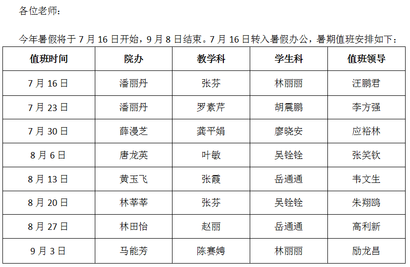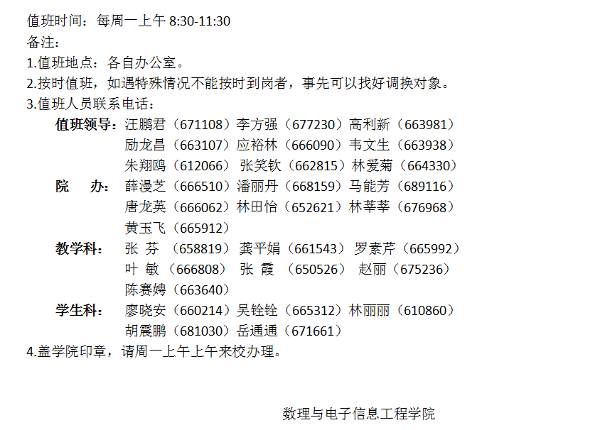 2017-2018学年第二学期教学科收成绩和考核等材料及值班安排通知