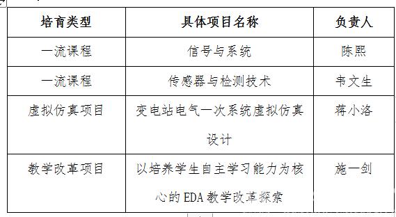 根据《关于开展电气电子工程学院国家级(省级)课程、教研教改等建设培育工作的通知》(行政〔2020〕2号)文件规定,经过个人申报、学院评选等环节,现将评选结果公布如下: