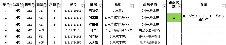根据学校学生公寓安全“四级联查”工作机制要求,学工部、研工部、后勤管理处、保卫处、资产公司联合于2月23日对学生公寓区安全情况进行检查。在检查中beat365官网存在6起安全违规现象,现予以通报批评,请大家引以为鉴。