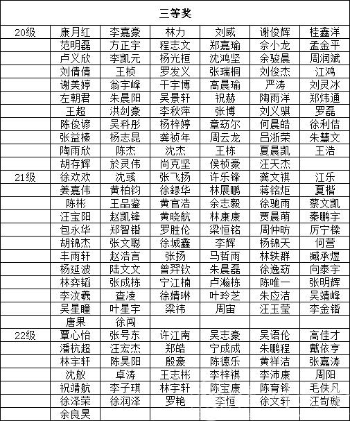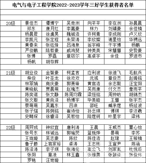 根据《beat365在线唯一官网奖学金实施办法》、《beat365在线唯一官网学生综合素质考评实施办法》、《beat365在线唯一官网三好学生评选办法》进行2020级、2021级、2022级学生2022-2023学年奖学金以及三好学生评选。经学生申请确认、学院评选,共评选出景佳杰等297名同学获得综合奖学金,张淞等25人获得单项奖学金,景佳杰等136名同学获“三好学生”称号。现将名单予以公示,请班级以及个人认真核对。