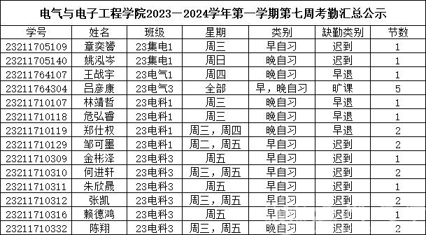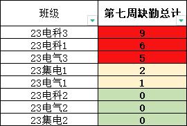 2023级上周早晚自习缺勤情况如下: