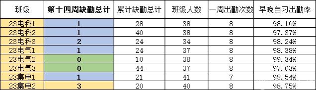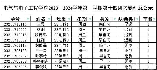 第十四周早晚自习缺勤情况如下: