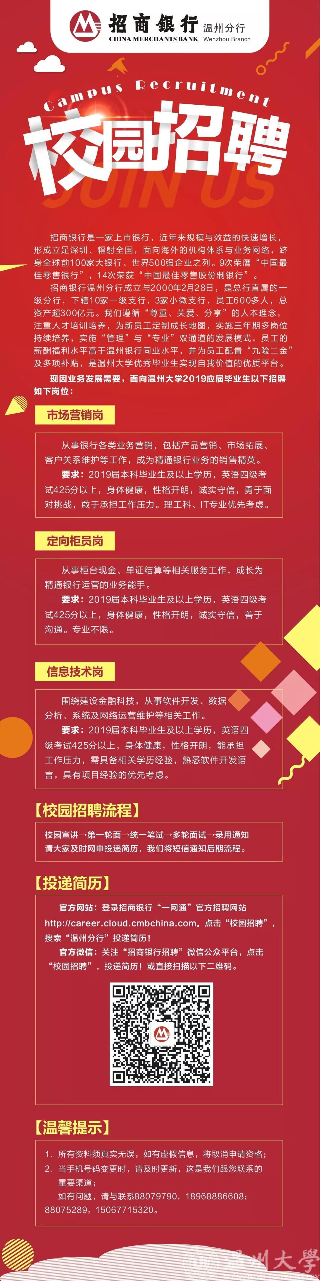 【岗位推荐】招商银行温州分行