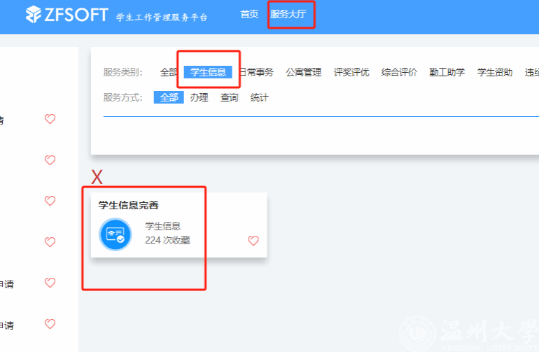 操作:统一身份认证-学工系统-服务大厅-学生信息-学生信息完善![]()