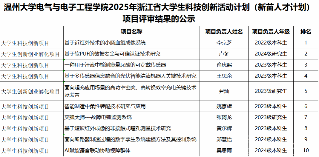 根据《关于印发〈浙江省大学生科技创新活动计划(新苗人才计划)实施办法(试行)的通知》(团浙联〔2010〕13号)和校发《关于开展浙江省大学生科技创新活动计划(新苗人才计划)2025年度项目申报的通知》的要求,经个人申请、学院评比,现对beat365官网2025年浙江省大学生科技创新活动计划(新苗人才计划)项目评审结果予以公示。