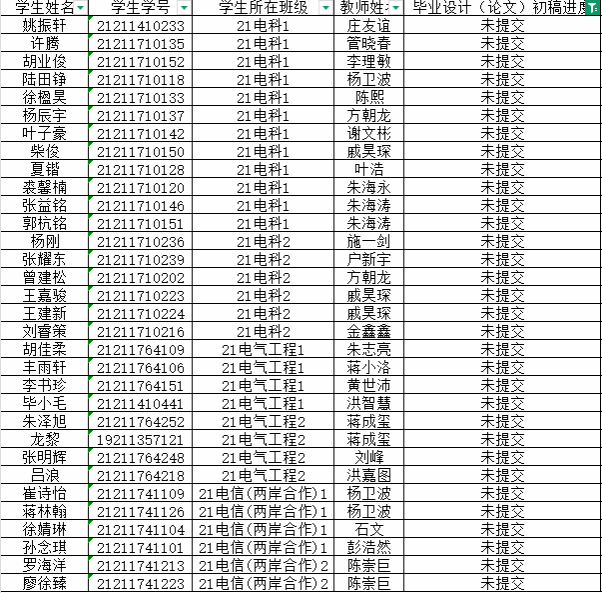 截至2025年2月25日,仍有部分同学未上毕业设计(论文)初稿,具体名单如下: